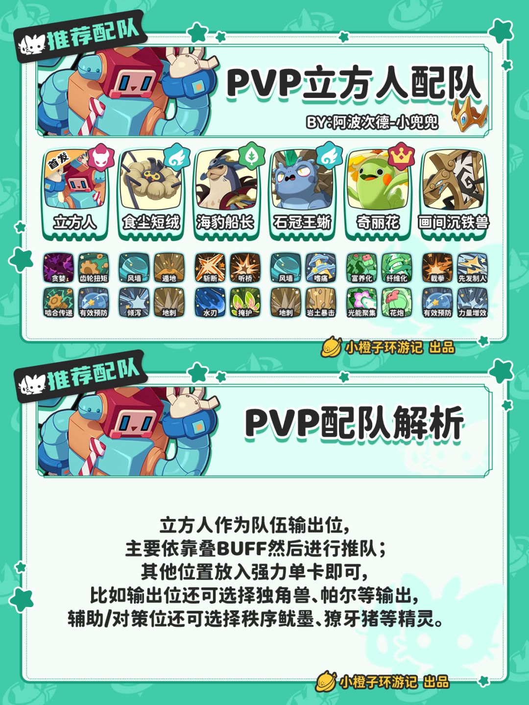 tips: 立方人现在PVP可以当一个强力单卡,如果以立方人作为核心搭配队伍的话,也可为其配5个强力队友。整体来说现在PVP配队较少,看后期开发吧~
