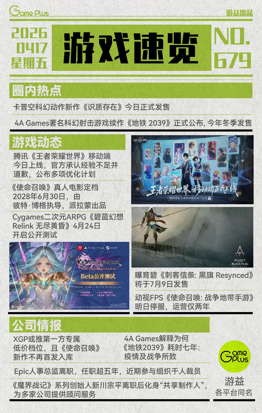 游戏行业值得关注的信息-0417