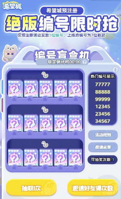 2. 点击“抽取”,获得五位数绝版编号UID;