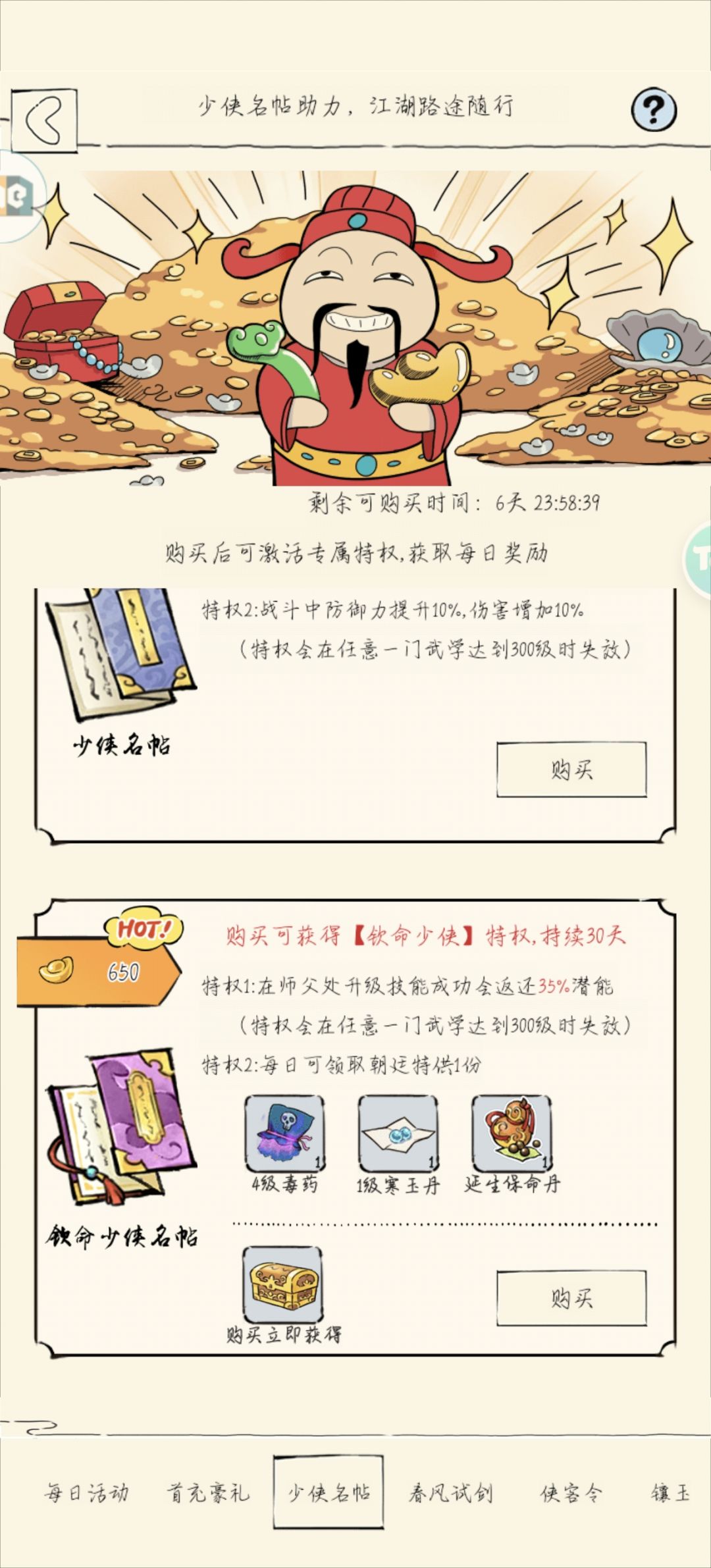 看了挺多的,选了个初始进来,一千万潜能领完一千四百万了,金条买了一套衣服头饰和一个坐骑和一个改名卡,然后应该就不会花金条了,这个少年名贴有必要买吗,还有月卡,是在玩雪山剑,应该咋升级好,什么流程来,金条还有什么用处,该花花还是攒着,