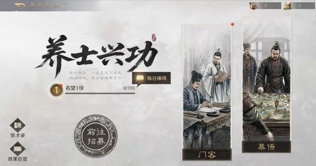 「门客」主内,可获取多种发展增益,更有趣味技能加持,助主公稳筑霸业根基!
