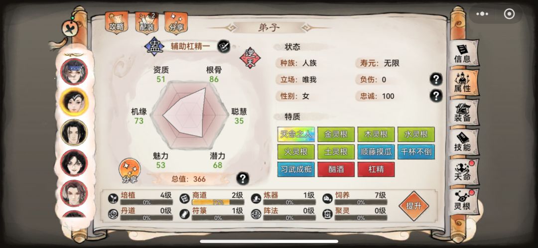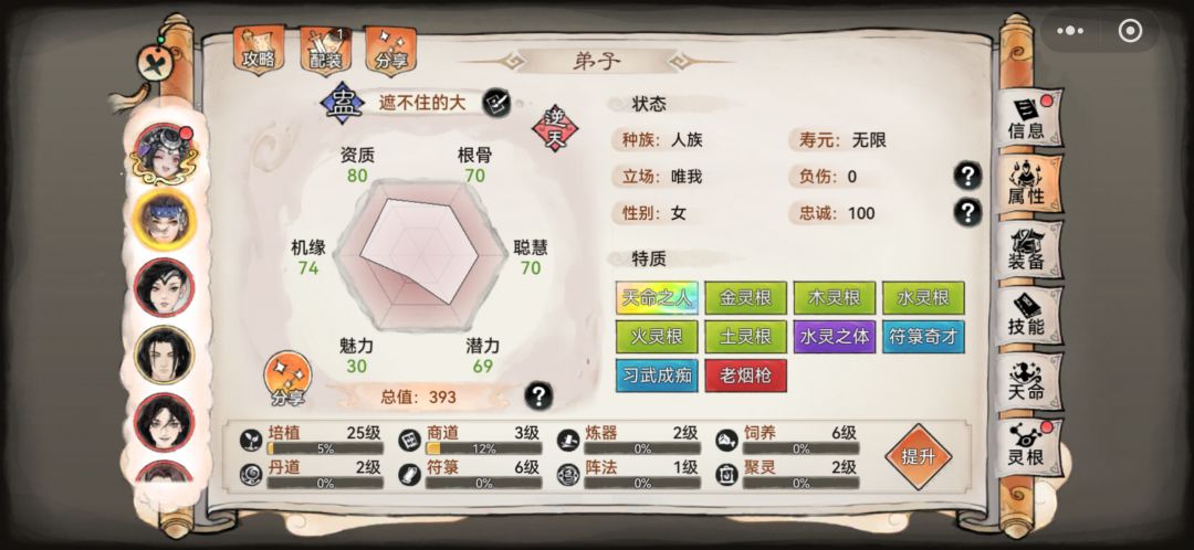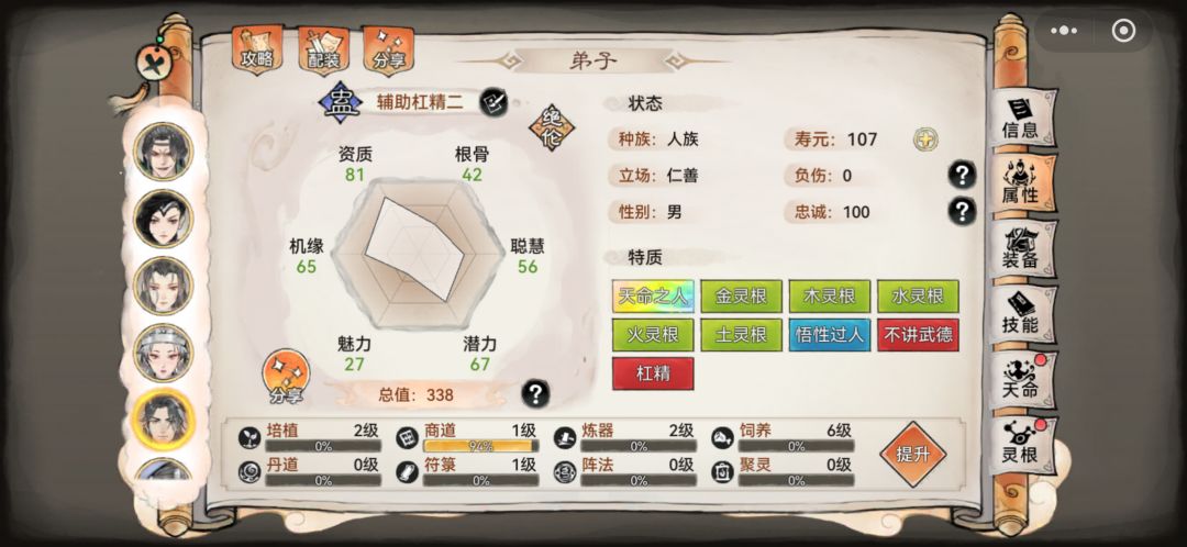 如图几个弟子,怎么挑选主c副c和辅助;有焰花,唐仙三,阿璃仙三(1队的副c) 。
