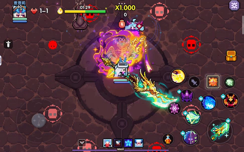 ⑷一键连招★使用说明:在精英出现红圈时踩红阵(即boss出来的一瞬间踩红阵),点一键连招,之后只需手动按普攻,其他交给连点