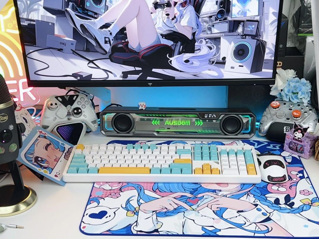 主要是配色深得我心!随手一拍都好好看键帽的字符印刷很清晰,边缘没有毛刺,整体做工不错。