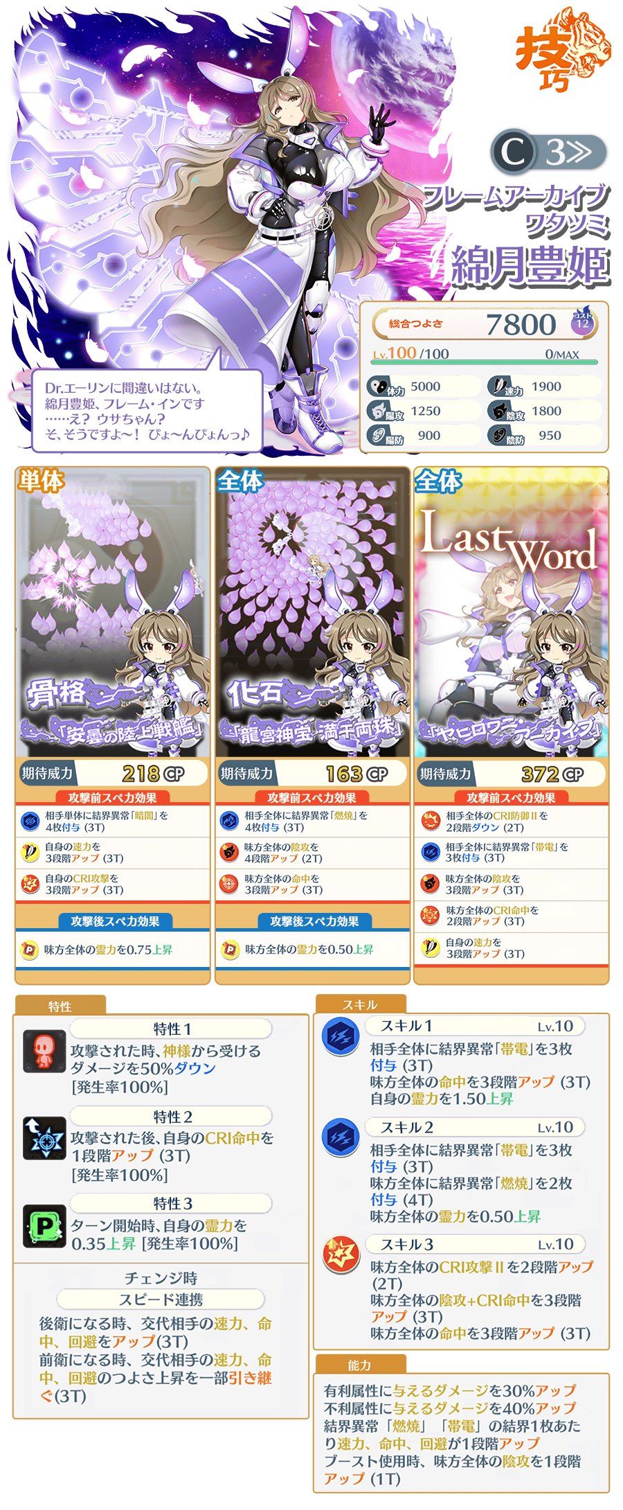 极其强力的破盾和小卡火力,超广域特攻配合会心攻击II配合前置fb和不利增伤,是存在逆属性执法的能力的,