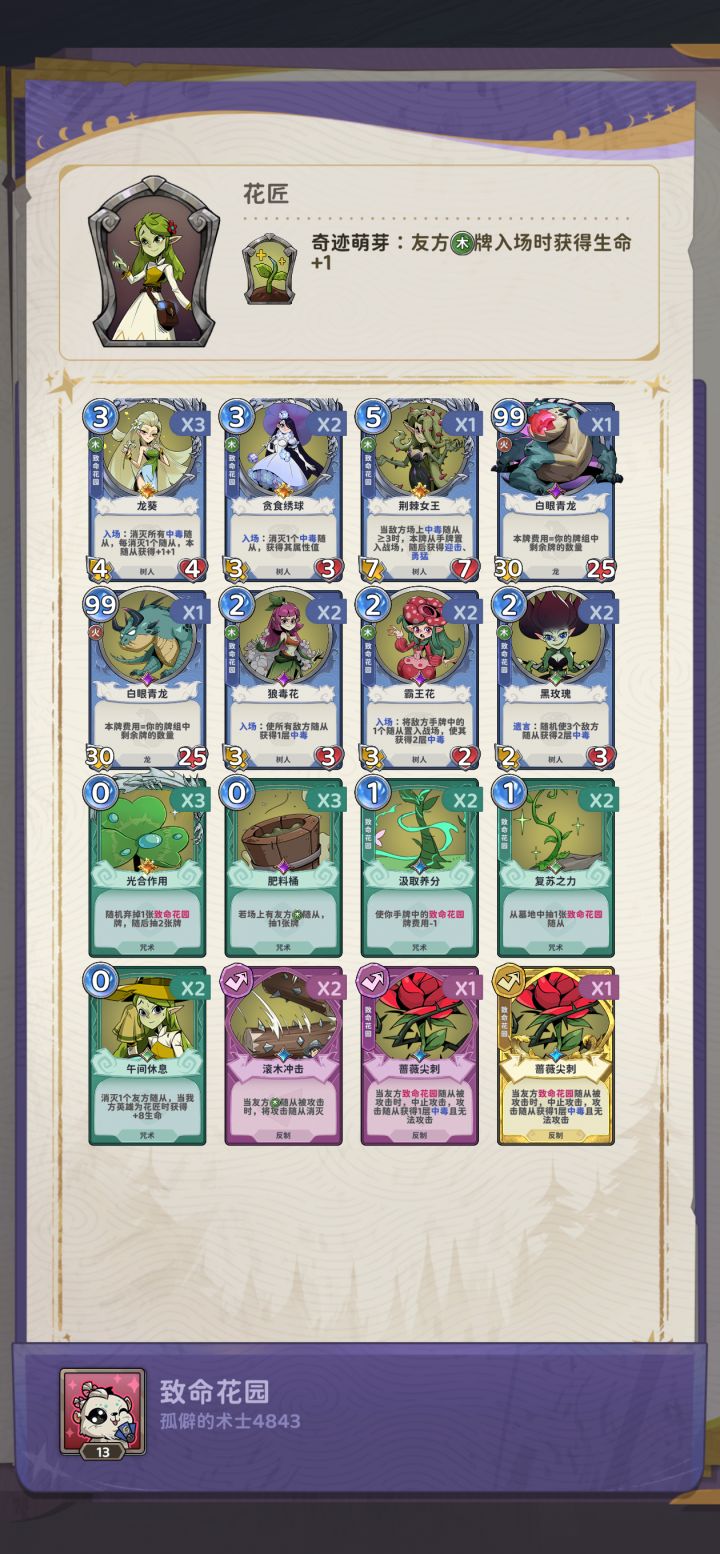 自己体验摸索了一下花园毒流派的配卡,配卡如图,金卡没多的了,其他方面大佬有没有什么改动建议?