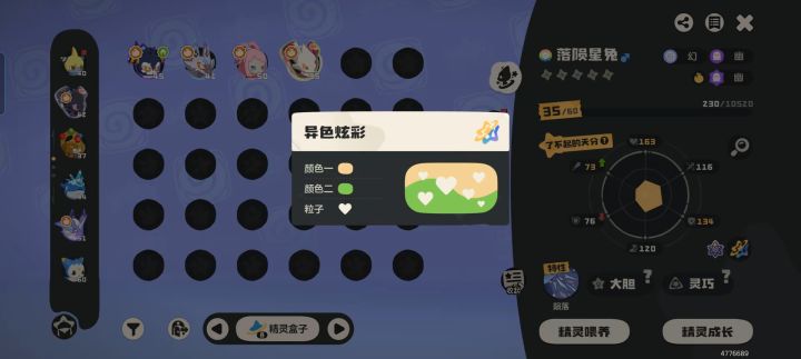 不同精灵提供的星光值不同,高阶精灵单次可获80点星光,低阶精灵仅十几点。抓高星光精灵时,往往七八只就能触发污染;抓低星光精灵,则需要二三十只甚至更多。星光值累积速度,直接决定污染触发的快慢,进而影响异色获取效率。