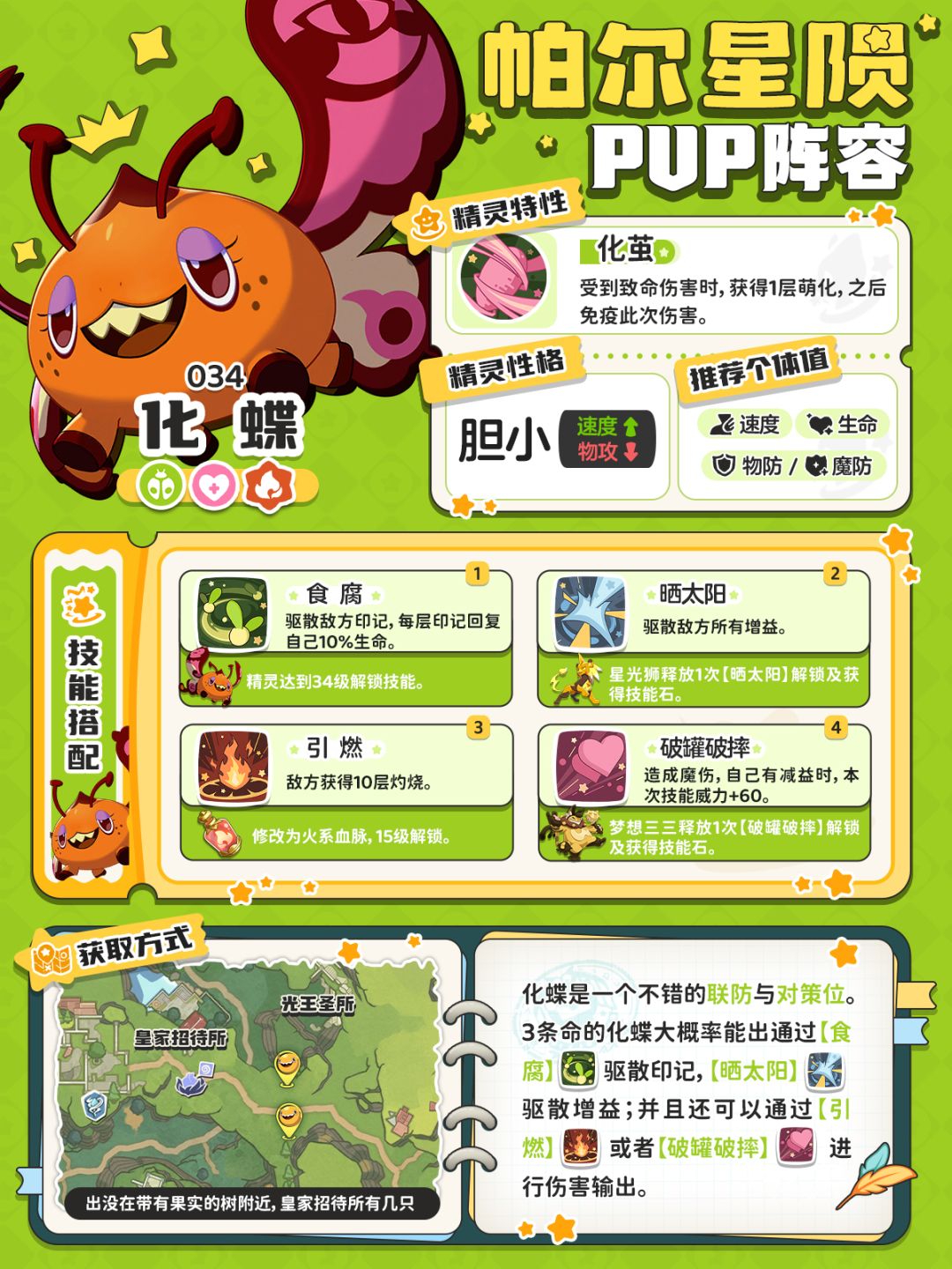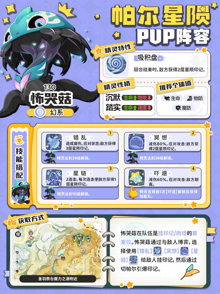 今天做的这套阵容是PVP大热的帕尔星陨队,核心组建是怖哭菇、龙虾帕尔与落陨星兔。其他位置可以进行对应替换。