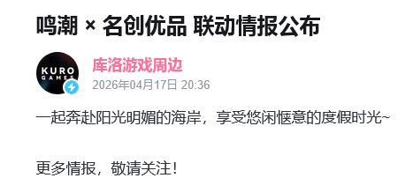 🏖️ 鸣潮×名创优品联动官宣!双漂周边即将上架,多位人气角色主题联名产品预定