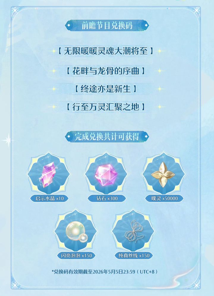 无限暖暖2.5兑换码: