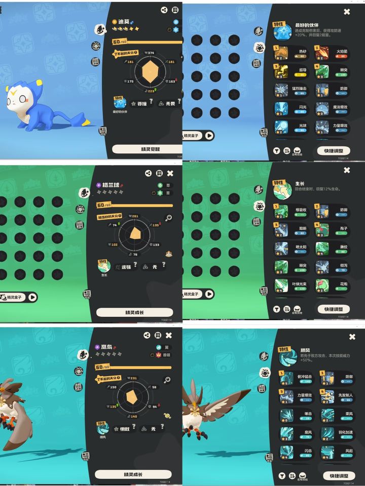 另外两只60级就好了,天分最好加生命(其中格兰球要去学习一个防御技能,没有防御技能书的去用鸭吉吉放一次防御就好了)