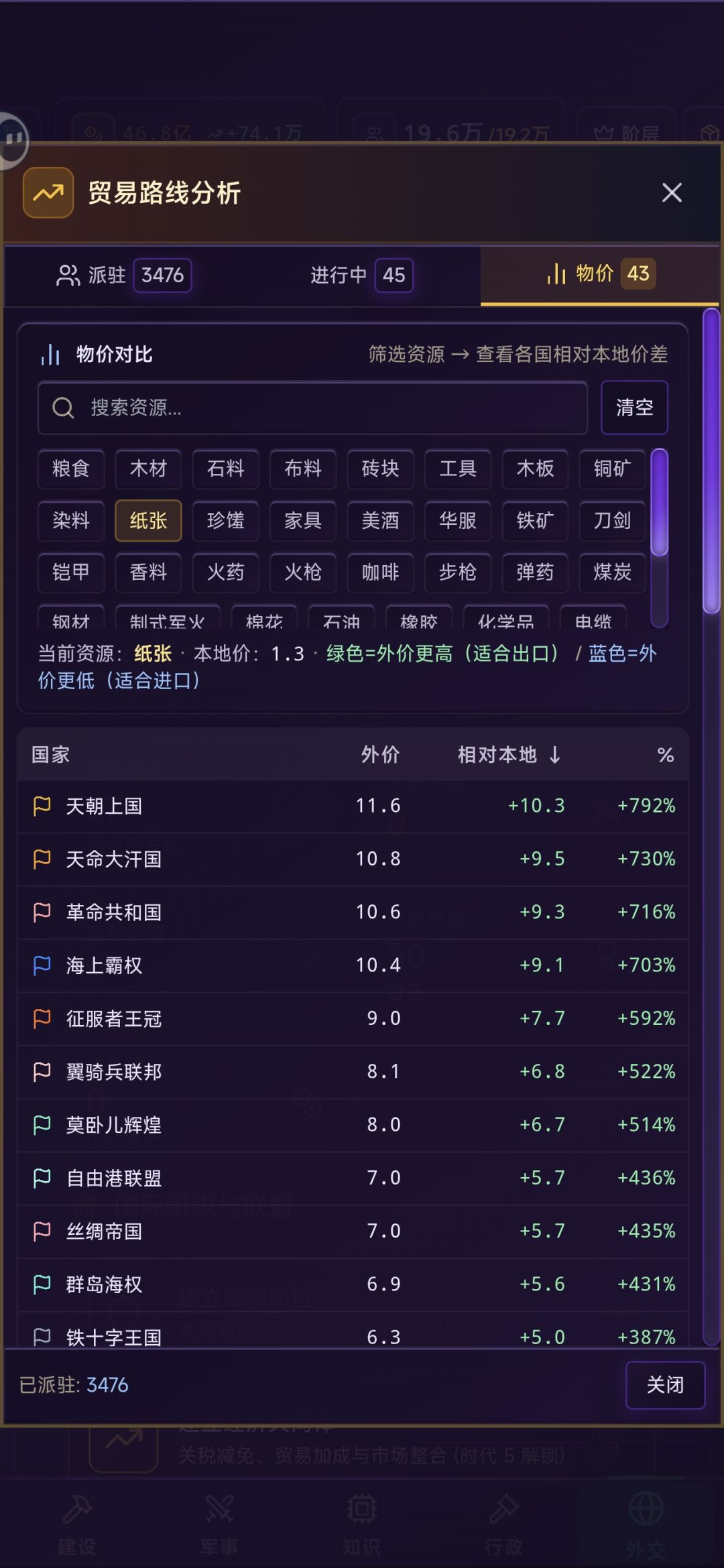 7,可以看到我资本家和工人是主力(前期就是商人,地主,农民)
