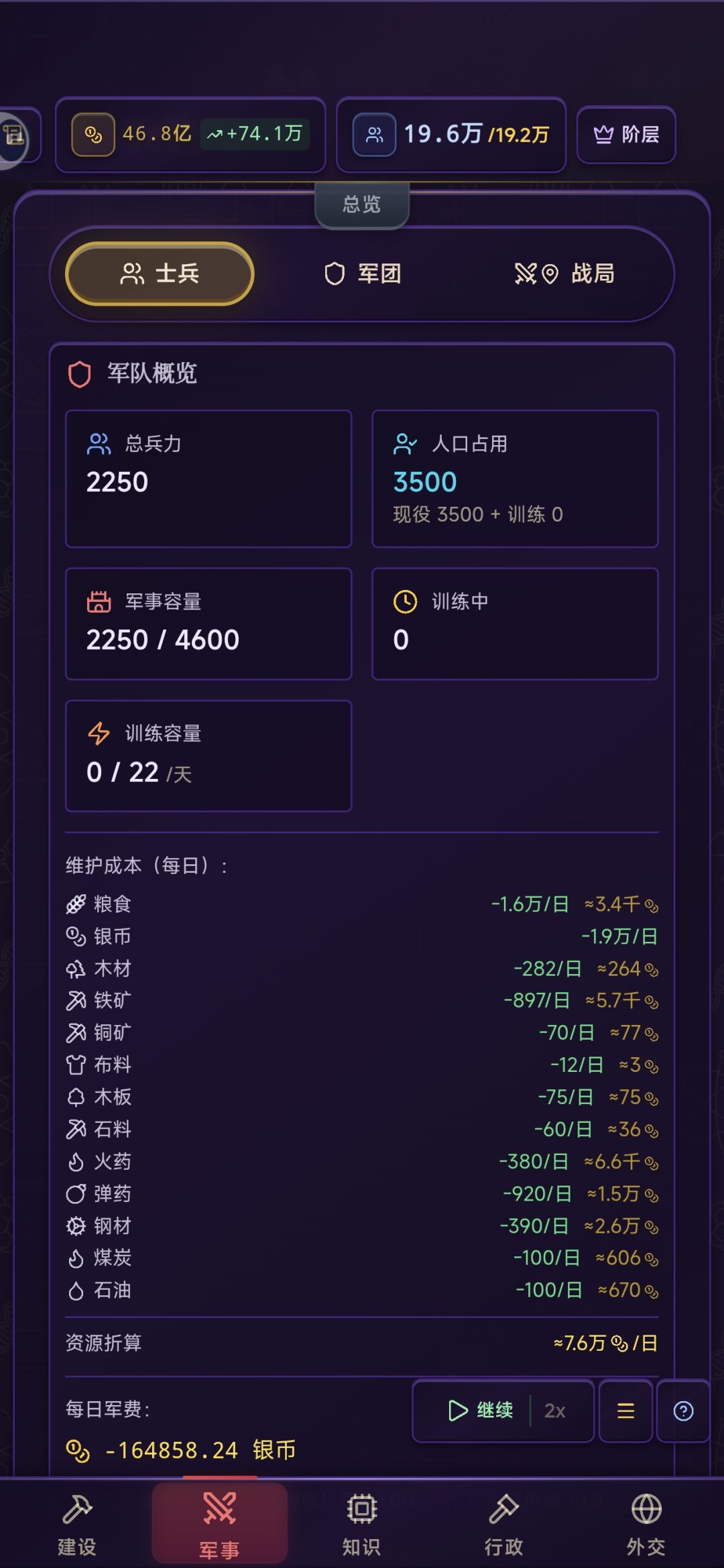 8.养个几千的小军队完全没问题(没有对外战争,养着主要为了前期镇压叛乱)