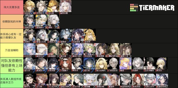 前四排体现在队伍中的能力但并非完全靠强度排序,每行从左到右有一定强度因素