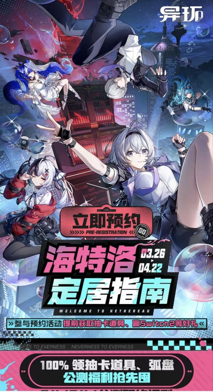 都市开放世界RPG异环4月23日公测!参与活动定制海特洛市民卡,即可获得【捏造骰子】【A级弧盘】等奖励!邀请好友预约游戏还可抽取PS5、游戏周边等更多好礼 >>