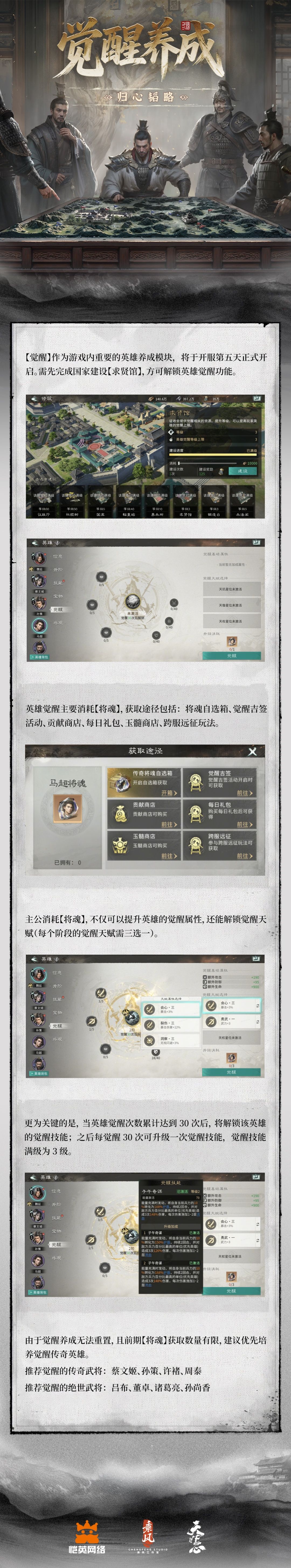 当开服来到第五天,全新的养成系统【觉醒】也将对外开放。作为游戏重要的养成模块,飞弟火速为大家带来相关功能介绍,希望能帮助各位主公快速了解该系统。