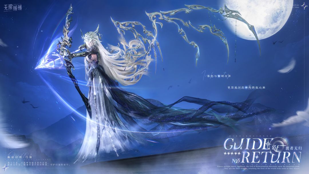 暮色与黎明交界,掌管轮回的神明降临山巅。祂是最后的送行者,为远去的魂灵拂尽一身尘霜,也是末途的引路使,将褪色的星辰渡往新生之河。