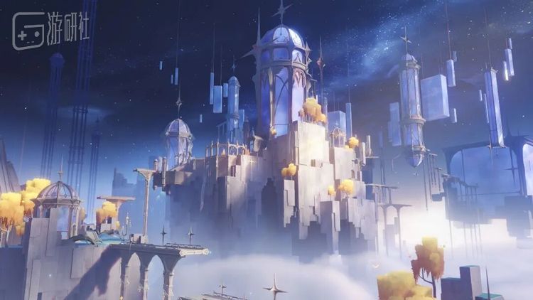 按照世界观设定,“空之神殿”地图是由游戏中掌管“空间”,位面更高的神明所创造的,所遵循的物理法则、规律都悖于常理,那么首先在美术上,它自然要先和过去常见的地图做出区分,就算在老玩家眼里,这次由星海、立方体、悬浮台阶、玻璃幕墙所组成风格化区域,也是此前游戏里从未出现过的: