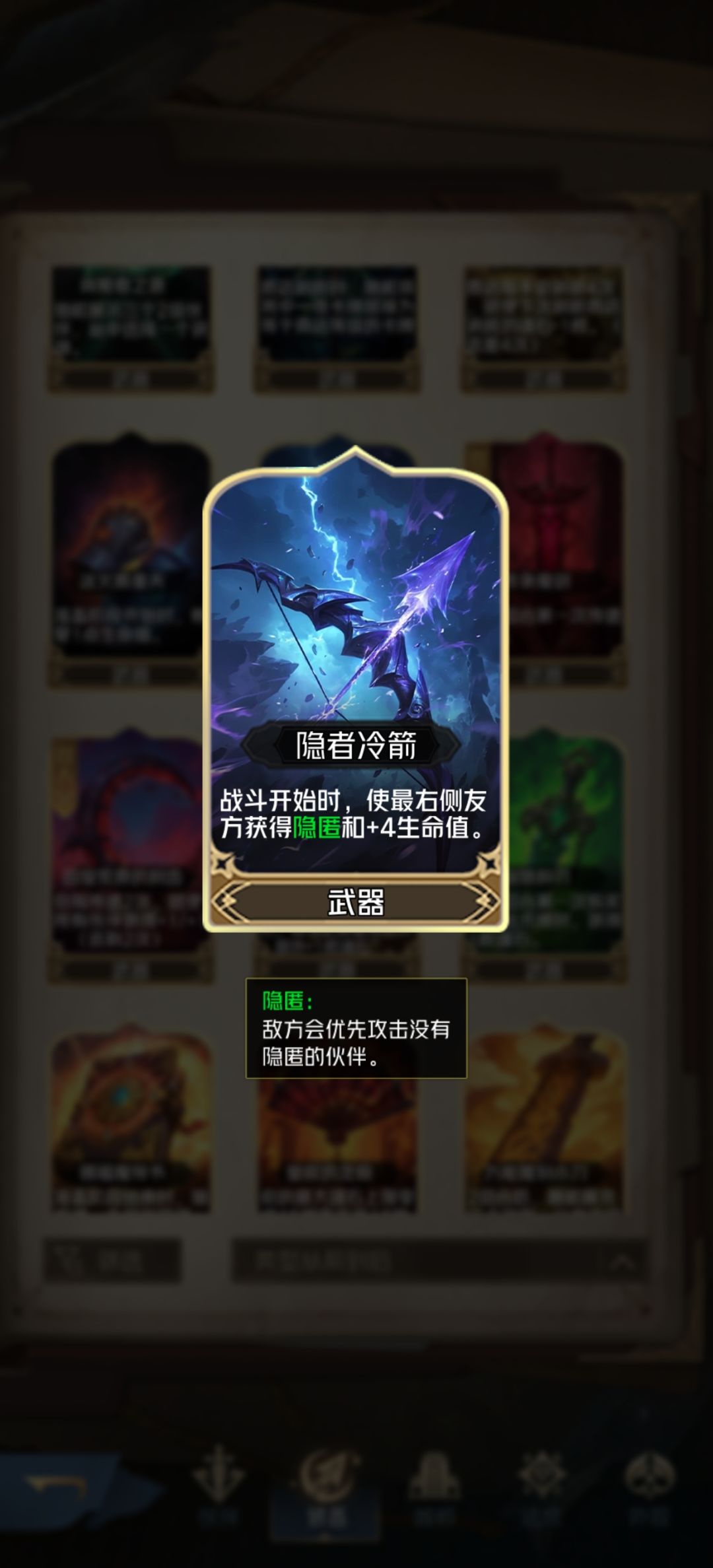 独有的直接提供隐匿的装备,有效保护花一类的核心怪,+4血在前期聊胜于无,但容易被“陷阱”针对。