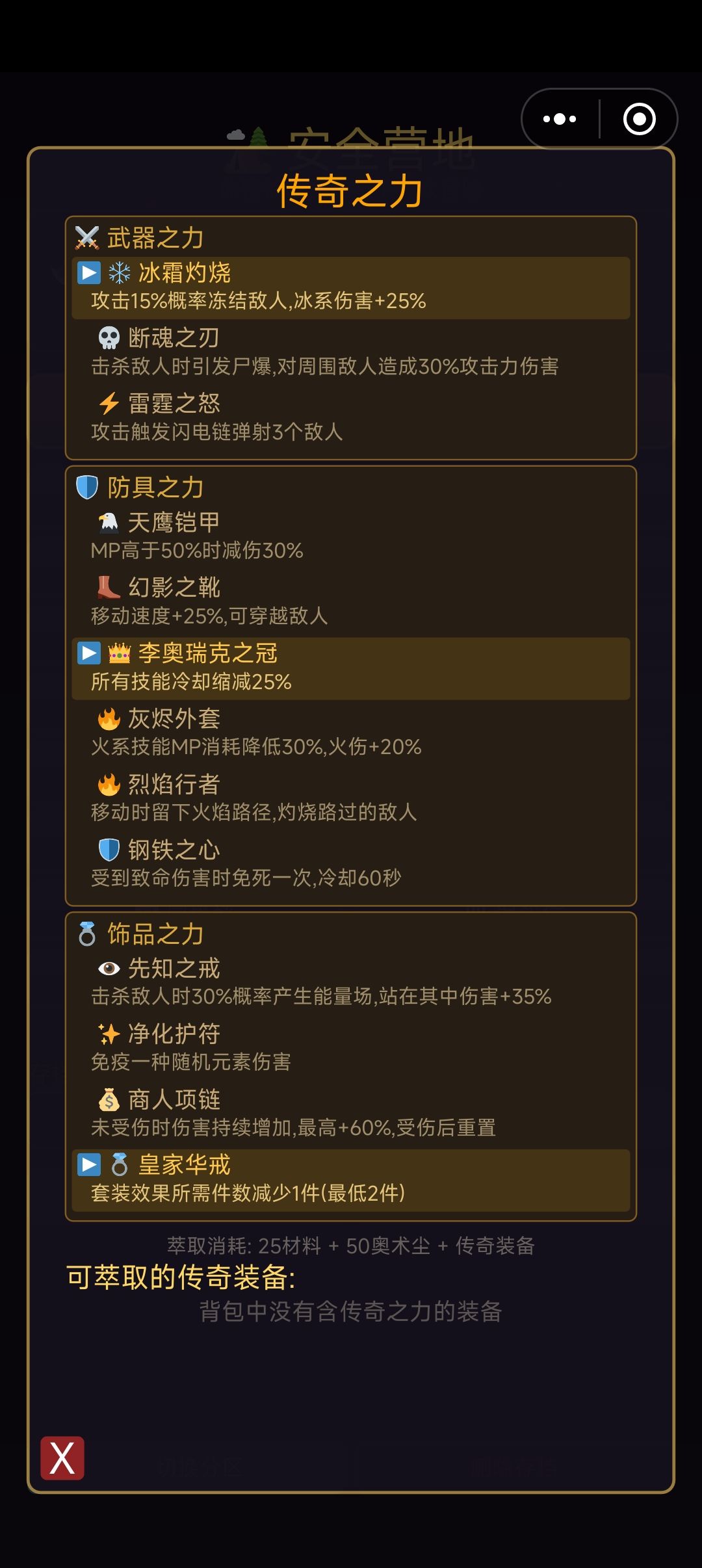 1.传奇装备萃取完在营地选中就生效。红色属性一样。