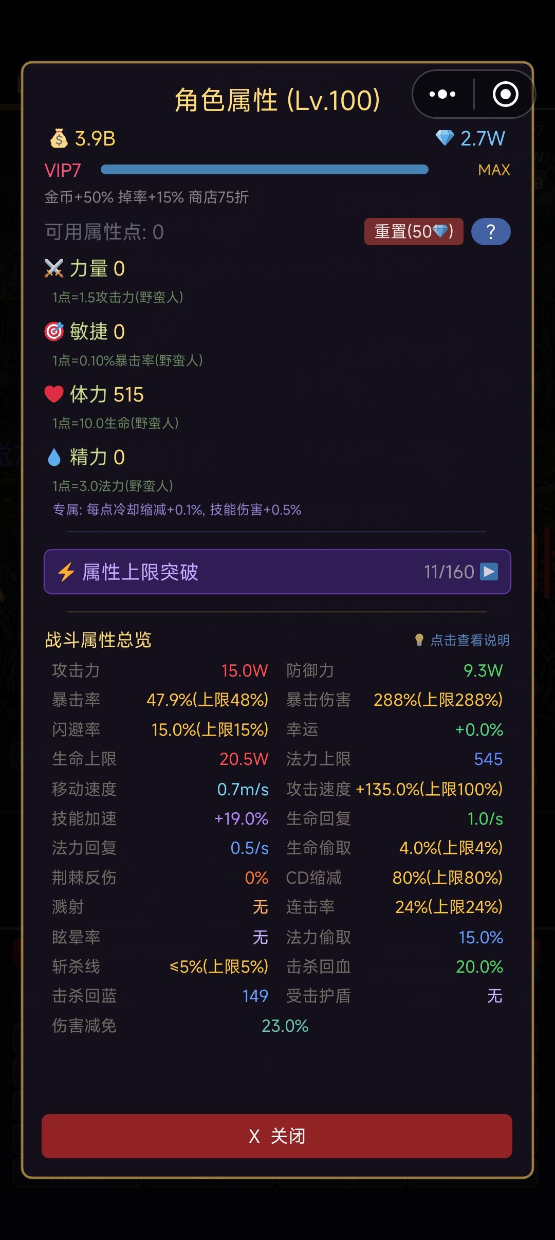4.除了基础属性,其他属性都有上限,需要用钻石突破。不需要堆,装备基础属性优先。