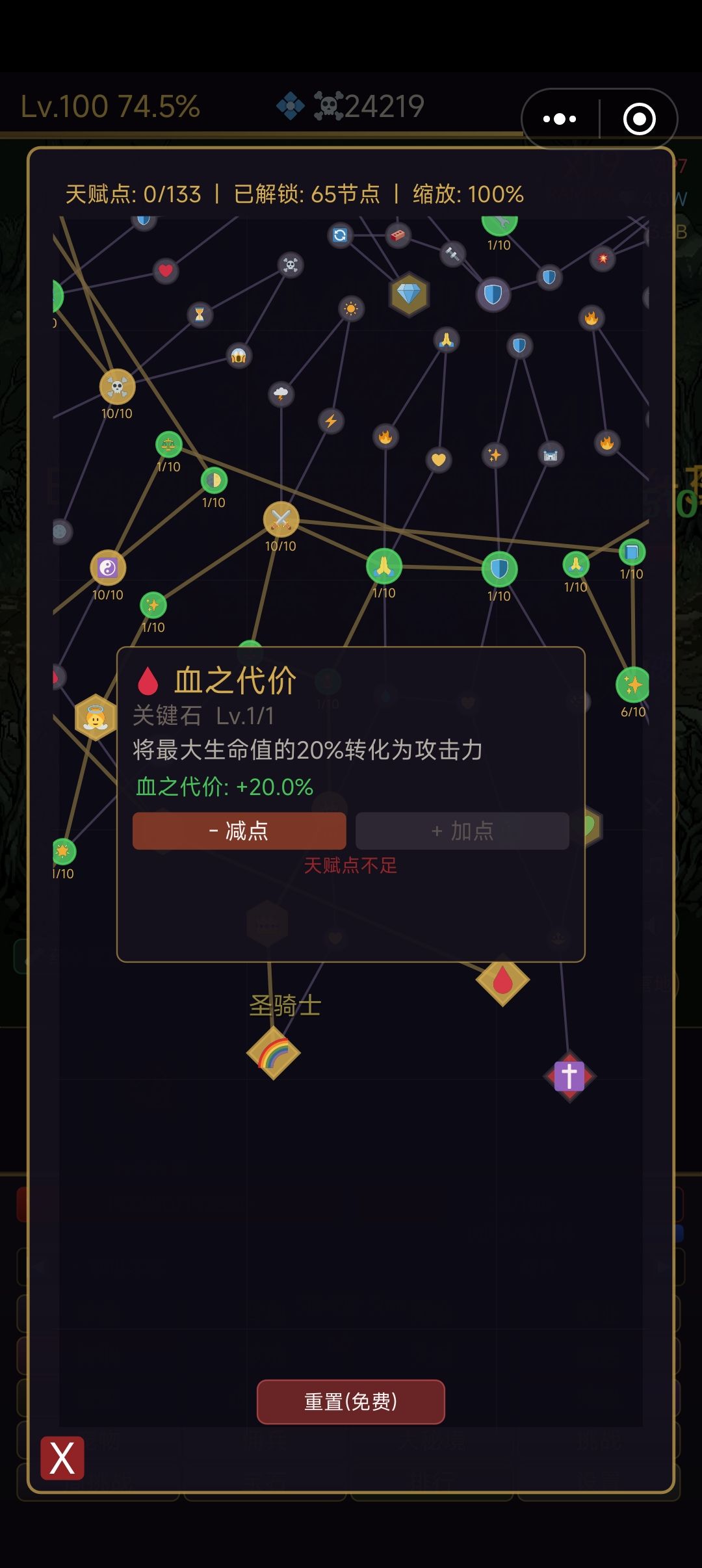 20级以后就可以10-20-35-50-75-100级这样刷普通的图了,主要是打装备。打一套黄色装备,洗第一副词条属性洗到高攻击就停(一级也可带100级的装备)。越级打本一开始不会出高等级的装备(30级打100的图好像要连杀1500只左右,死了从头再来),随着杀的怪物增加就会出高等级的装备,装备等级不会超过地图等级。拿到100级装备差不多30级左右。全攻击的话,攻击应该能到6000-12000的样子。技能上有图。选cd短的技能,到这里基本告别新手期。