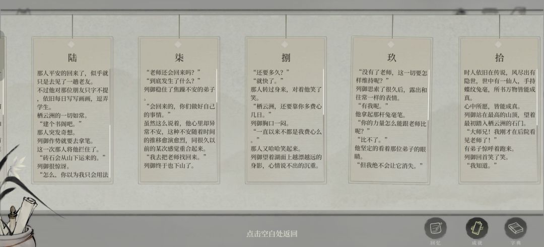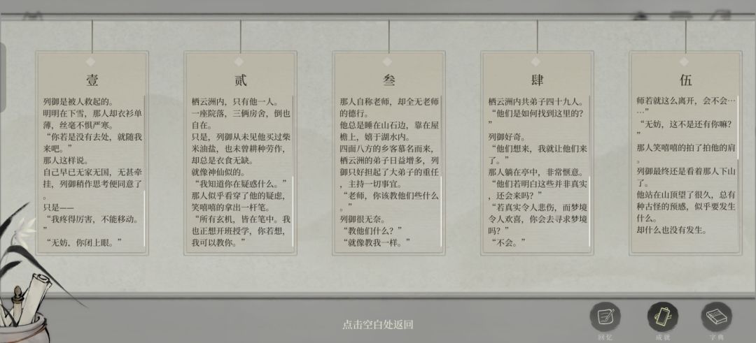 整个故事彩蛋其实穿插在游戏的每一个片段里,最后刷满成就就可以解锁所有彩蛋故事。真的是很不错的一个故事!请与我激情交流!最后壶丘怎么了呀,他三年前下山去见谁了,到底发生了啥呜呜呜,我好像错过了什么