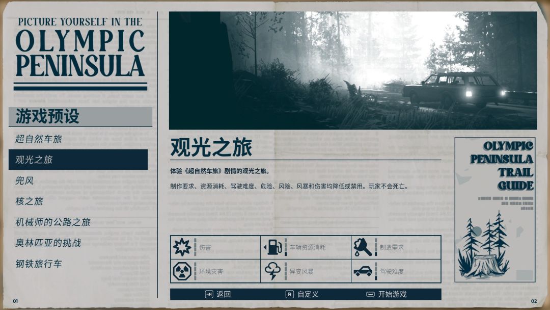 在进入游戏之后,就能感受到游戏的最大变化,那就是超厉害难度等级设定。游戏拥有标准模式、观光之旅、兜风、核之旅、机械师的公路之旅、奥林匹克的挑战、钢铁旅行车等多个难度。在不同的难度,驾驶难度、制作需求、车辆资源消耗、环境灾难、异变风暴、伤害六个参数各不相同,能满足不同需求的玩家。如果对这些难度设定还不满意,甚至还可以自定义游戏的各项参数。游戏目前提供了超过50项的参数来进行微小,绝对能达成玩家心目中的理想体验。不管你是以观光为目的的风景爱好者,还是喜欢挑战自我的硬核玩家,在本作中都可以得到满足。