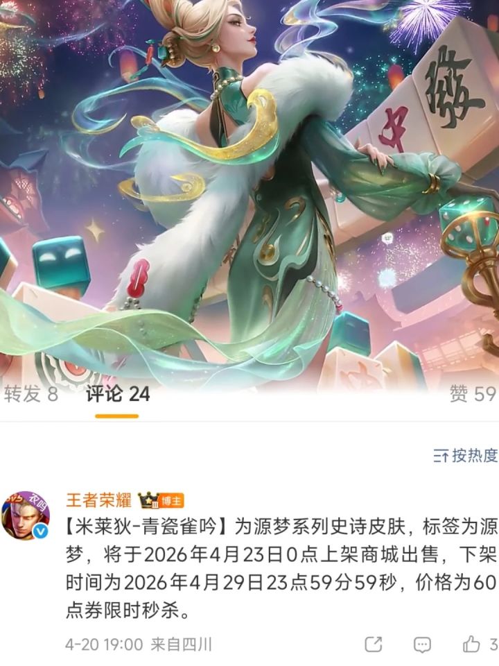 家人们快看过来!王者荣耀在 4 月 20 日正式官宣,米莱狄源梦系列新皮肤即将上线,直接把期待值拉满!#今天游戏圈发生了啥 #王者荣耀