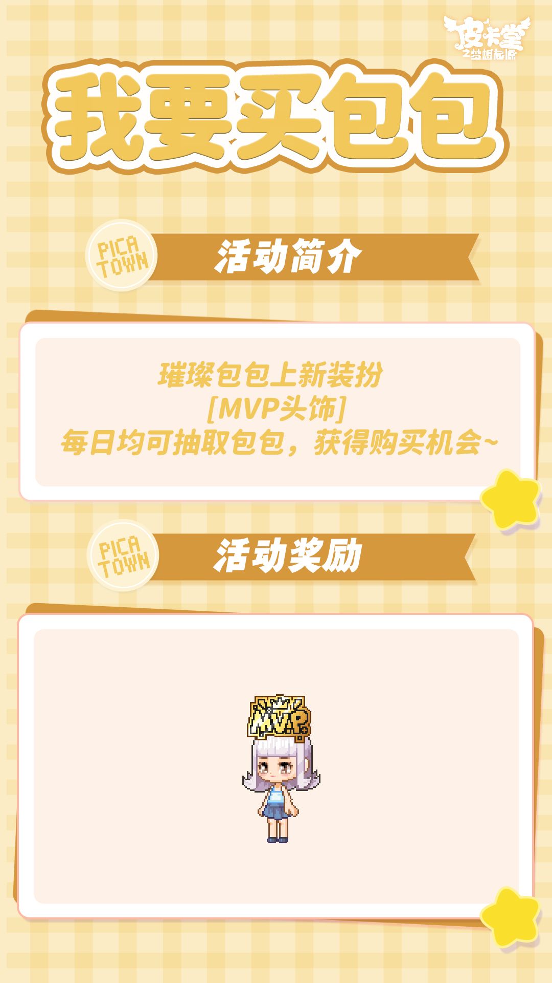 -【我要买包包】璀璨包包上新装扮[MVP头饰]!每日均可抽取包包,获得购买机会~