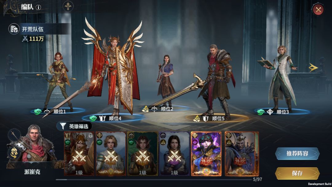 推荐阵容:- 主角派崔克:前排扛伤- 杰伊娜:前排扛伤- 贝拉:后排控制- 叶莲娜:后排控制- 任意输出角色