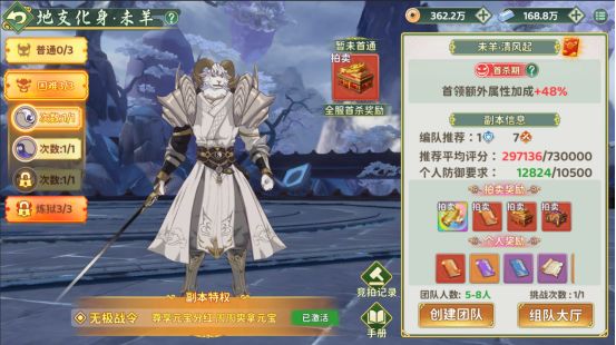 3、奖励次数:每个团队BOSS每周有一次奖励次数。成功挑战后将消耗奖励次数,并获得个人挑战奖励。