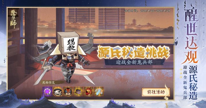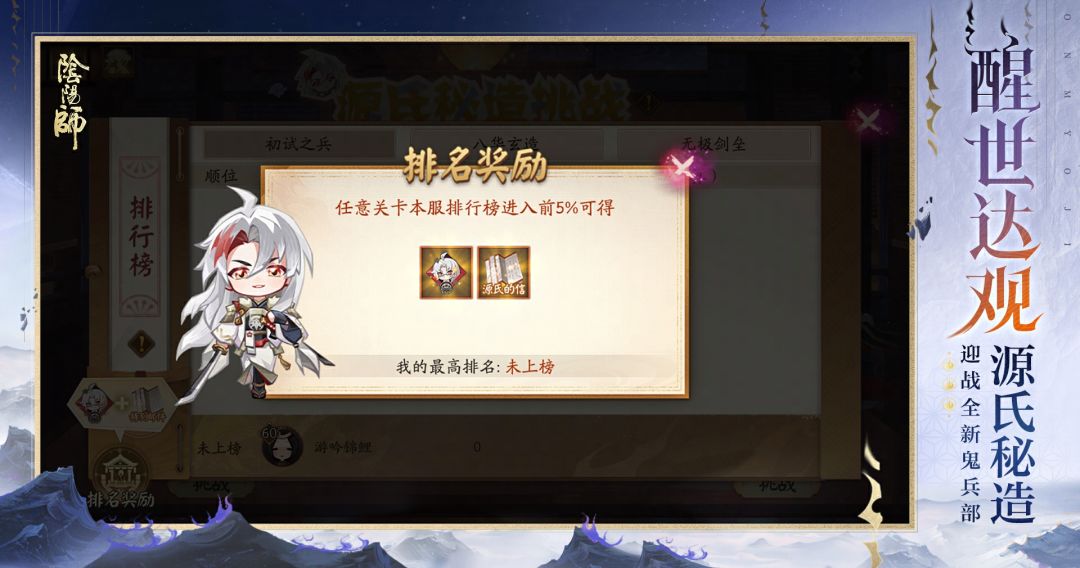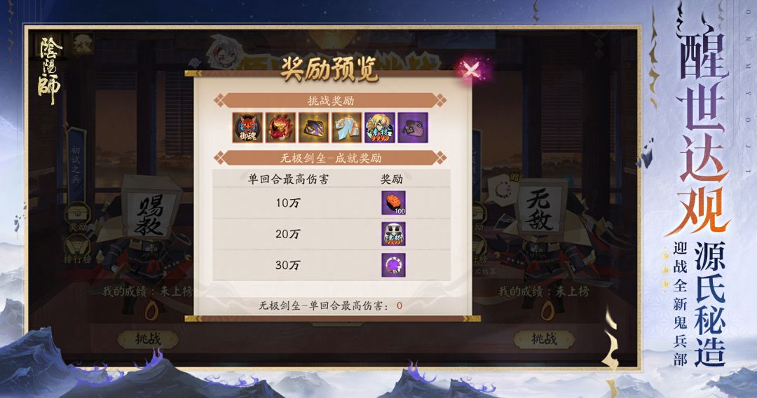 大人可通过挑战关卡赢取限定静态头像框,排名前列的大人还可获得限时聊天挂件及源赖光的特别信件~
