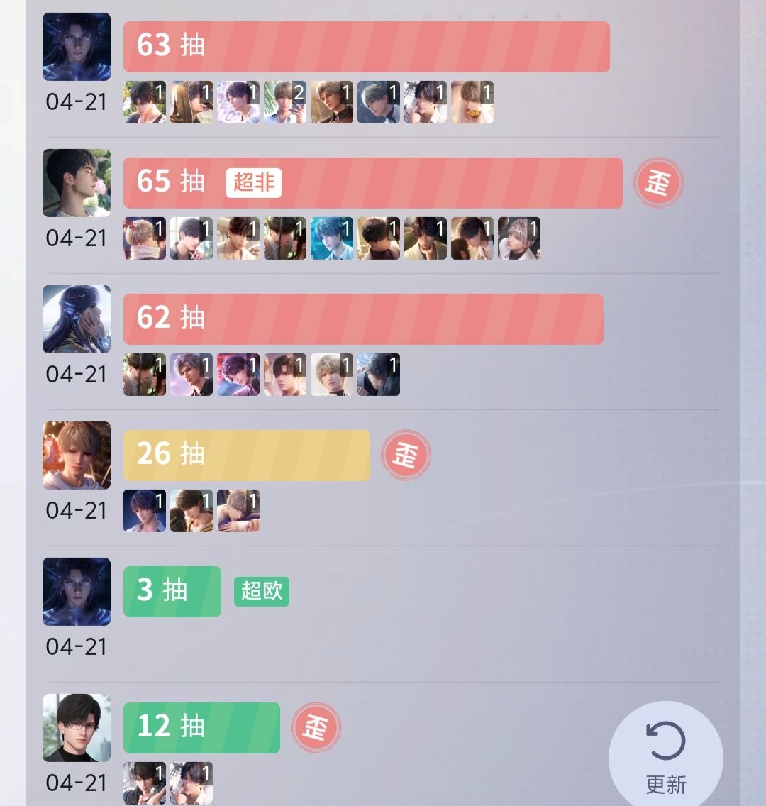 共512抽,攒的3w2加今天肝来的凑满了,无余钻