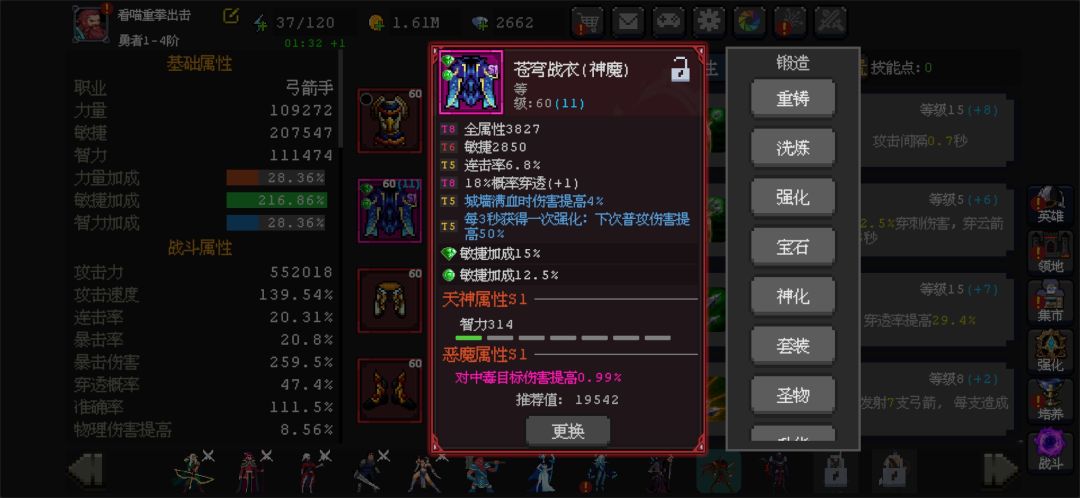 萌新火蓝转生三被卡血缘33 后面要卡到40关,刚好论坛上说火蓝被削,想着入坑还早考虑转一个神鹰!以上是若干凑出来的装备,但是论坛上都说套装最好用穿爆,这里因为还没玩过神鹰所以有点不明白,穿爆的话对小怪可能效果好一点,但是打BOSS应该乏力吧?额我这边神鹰算上衣服T8 18点 被动29点 普攻一20点 穿透概率勉强70,如果套装用穿爆的话穿透好像溢出了,我用连击暴击可不可以啊?用连击暴击套的话我连击暴击穿透这样数值都高,感觉比穿爆套装更有搞头的样子诶![[表情_微笑]](https://img-tc.tapimg.com/market/images/0f170d4b1ecf80c267e5a44b5992a199.png)