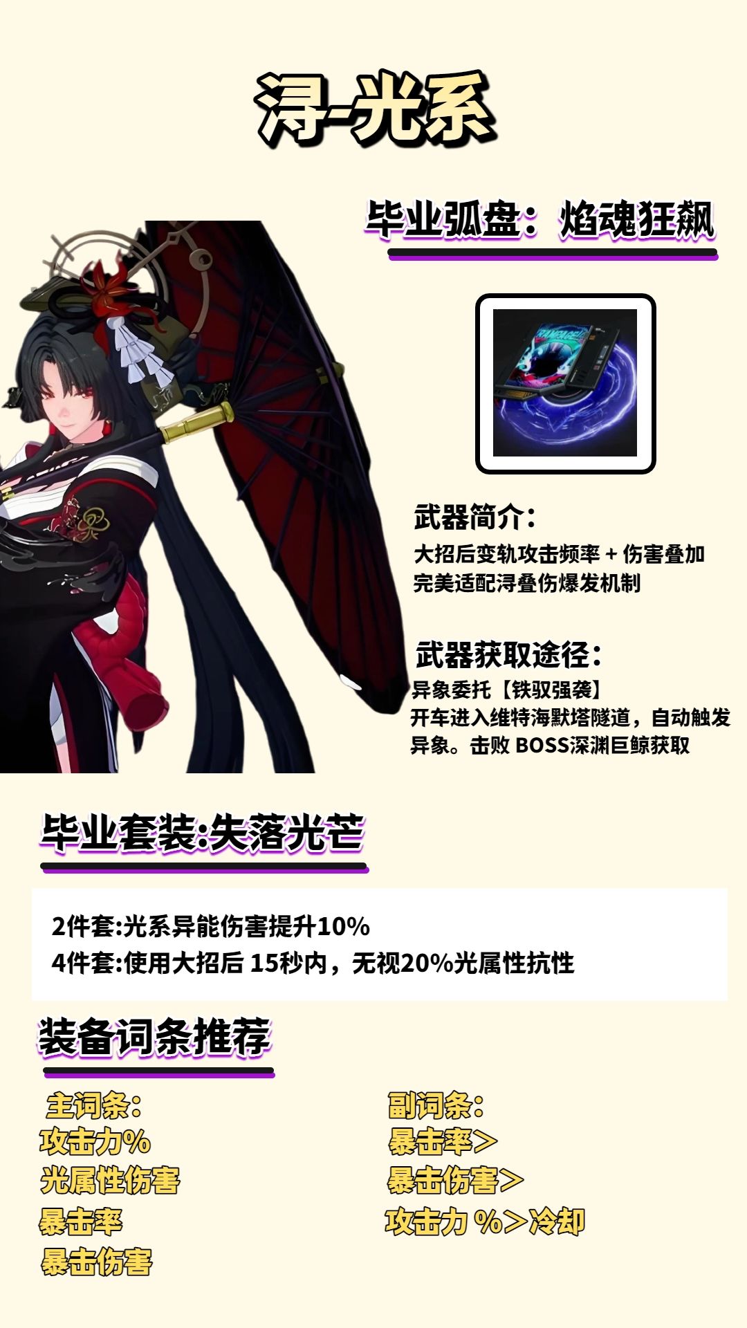 毕业武器以及套装选择