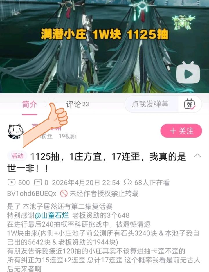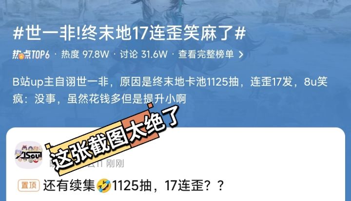📊 终末地17连歪非酋火遍全网!B站UP主1125抽连歪17次概率仅百万分之六