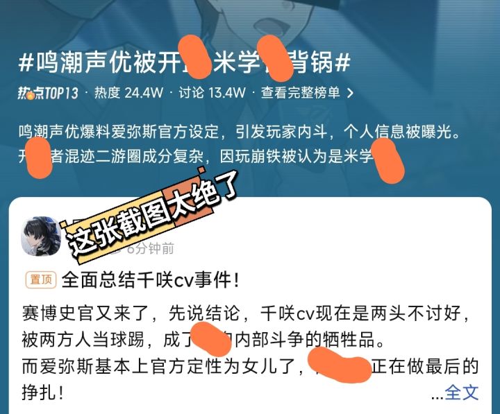 🎙️ 鸣潮千咲CV发言后惨遭极端网友违规行为