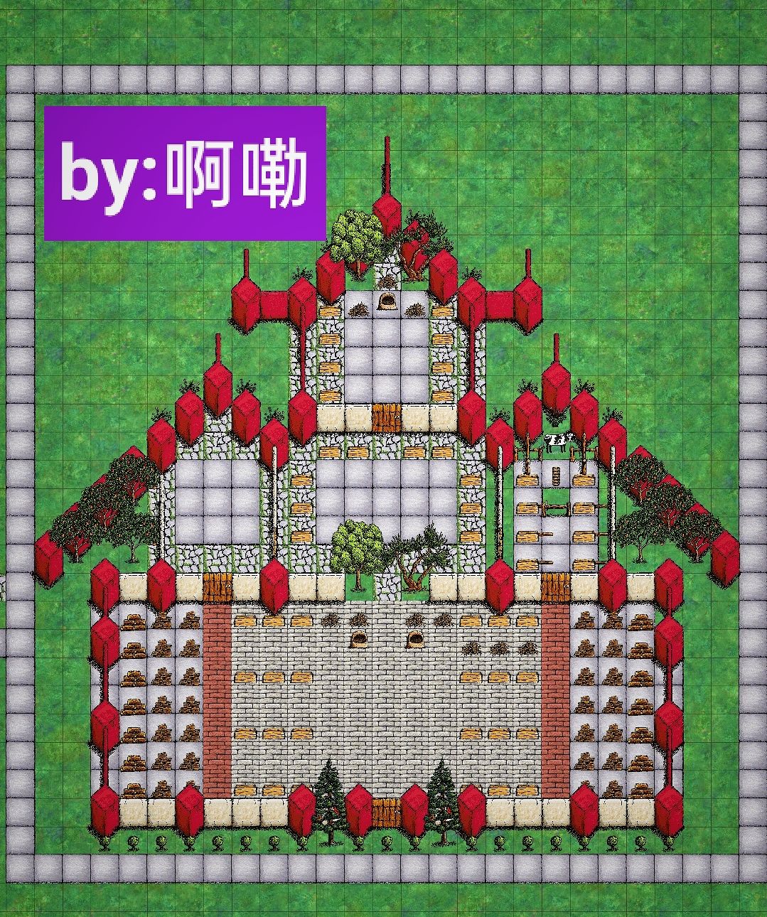 我的想法就是,从上往下,第一层是月饼房,右下小房子圈养一头🐄,方便!最下面的房间就是正儿八经的厨房。