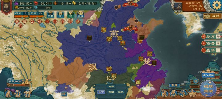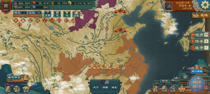 在游玩时发现的一个小问题,如图所示,汉在山东的卿室所控制的领地没有在王朝地图中显示,反馈一下