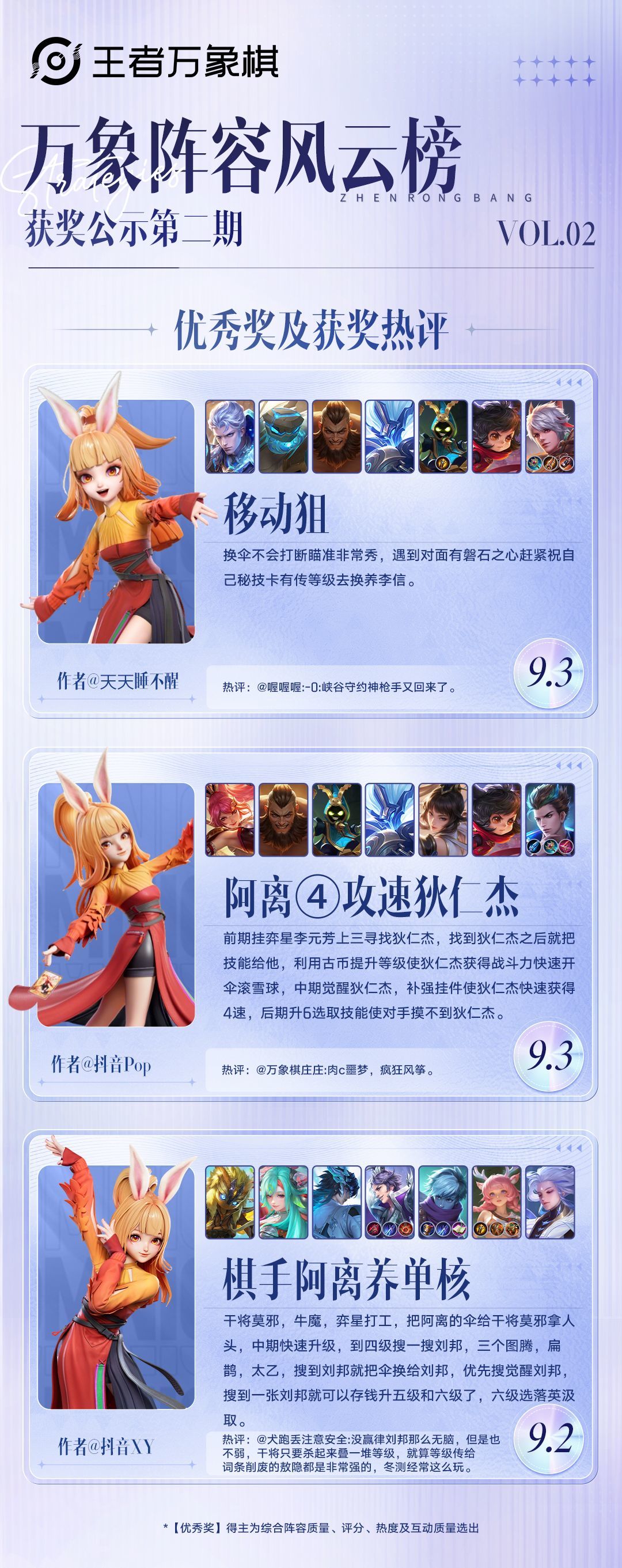 《王者万象棋》万象阵容风云榜第二期已结束,获奖名单正式出炉!🎉