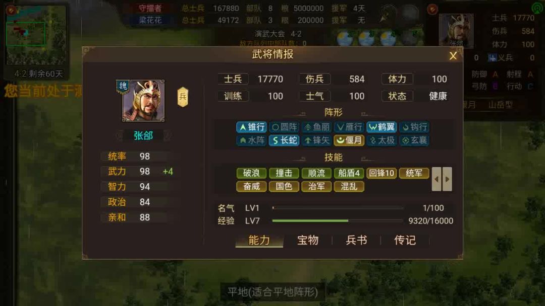 -- 满级效果:使用叱咤攻击时,攻击结束后100%触发转进效果:可进行额外移动(不可攻击),移动力为12点;转进后,对朝向的相邻敌军造成1次伤害,伤害率60%~100%;
