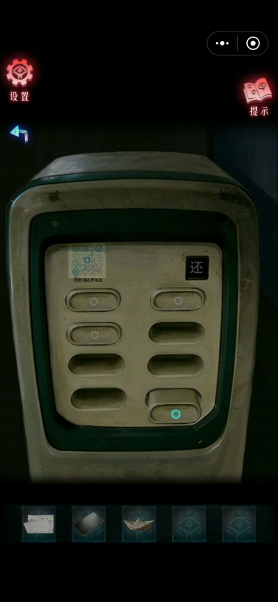 左边长凳获得水龙头开关 书包上拔下充电宝 三个充电宝按照书包上的线索放 获得新的充电宝 新的充电宝给书包充上电 获得温度计