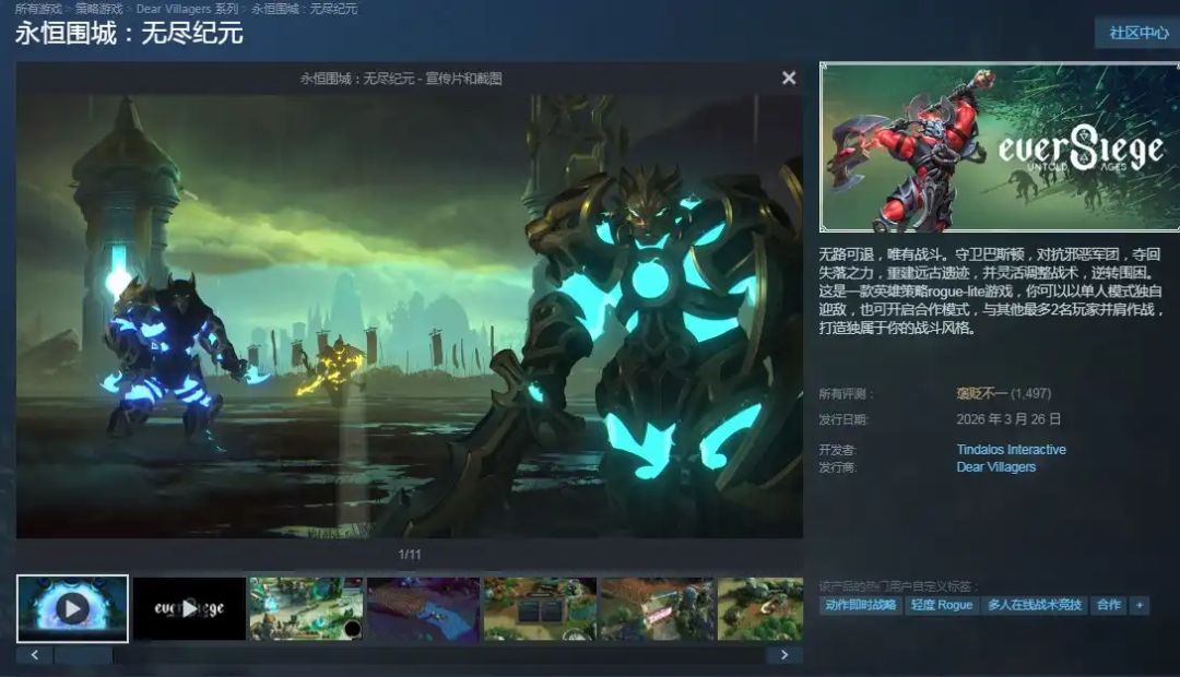 即便是在游戏类型百花齐放的2026年,PC端的《英雄联盟》、《DOTA2》,手机端的《王者荣耀》等MOBA类游戏依然大放异彩,占据重要的市场份额。但无疑这些游戏的社交属性都比较强,市面上却鲜少有可以单人游玩的MOBA。而《永恒围城:无尽纪元》这款类MOBA的游戏,除了可以最多3人在线合作游玩外,它同时也支持单人挑战。