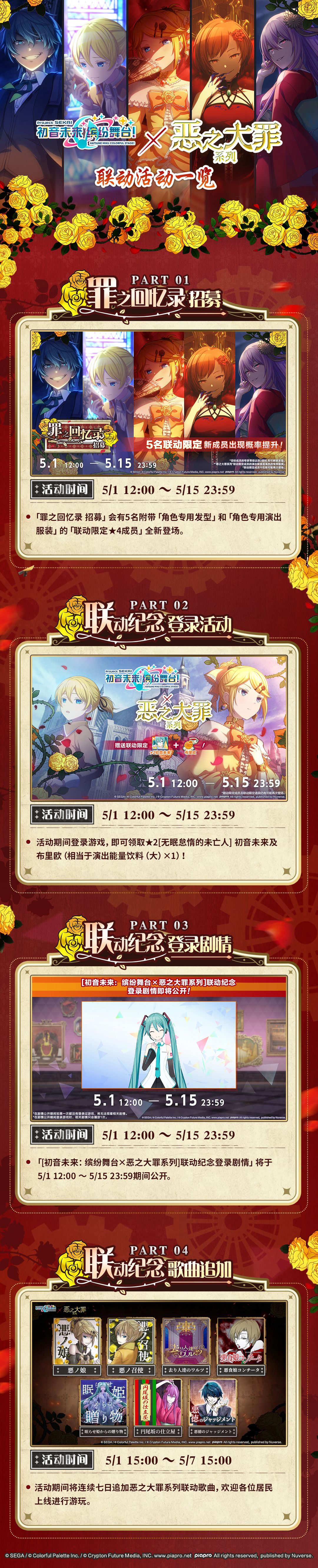 [初音未来:缤纷舞台×恶之大罪系列]联动纪念活动将于5月1日正式开启!敬请查看相关活动一览。