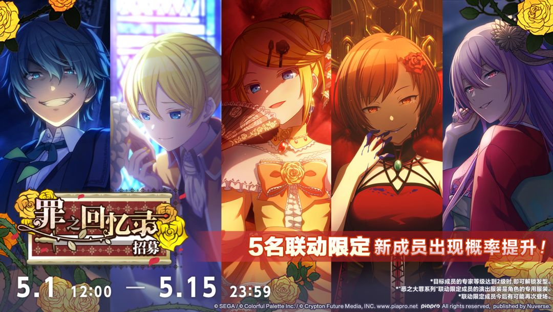 我们将于5/1 12:00起将举办[初音未来:缤纷舞台×恶之大罪系列]联动纪念「罪之回忆录 招募」