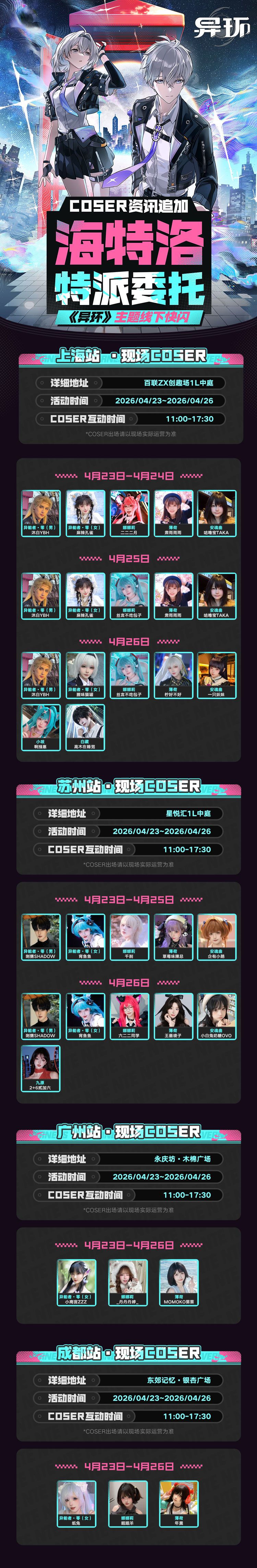Coser互动时间:4 月 23 日~4 月 26 日活动地点:上海、苏州、广州、成都