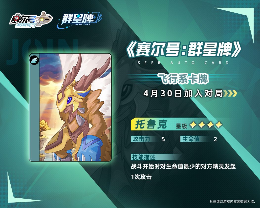 《赛尔号:群星牌》S0-季前赛4月30日上线,全新属性卡牌即将登陆。