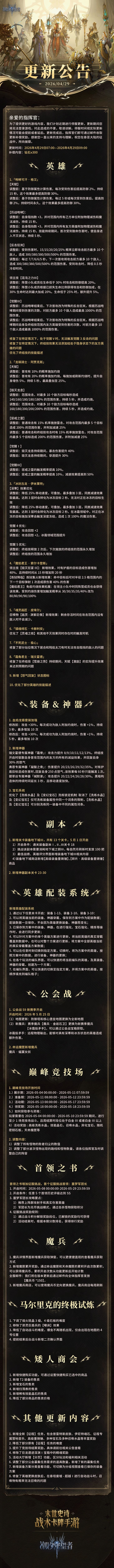 重点调整了「咆哮可汗·格汉」「龙祸骑士·阿贾克斯」等多名英雄技能、新增英雄配装系统及装备地下城Ⅲ,并即将开启公会战S9新赛季、巅峰竞技场及首领之书·征服挑战等多项玩法与优化。