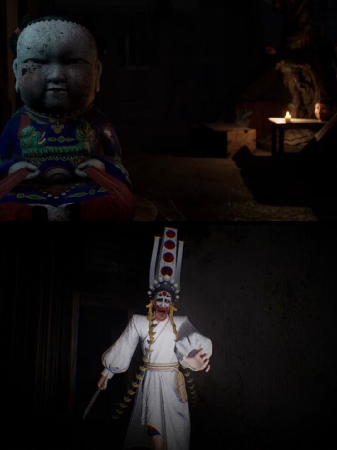 双人联机中式恐怖解谜,以鲁迅《女吊》与绍兴目连戏为灵感。双视角信息差设计,全程语音配合解谜。深度融入吴越民俗、非遗戏曲与吴语配音。写实江南古村场景,无跳吓,靠心理恐怖与诡秘氛围营造沉浸感。